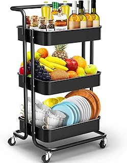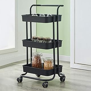 IKAYAA Chariot de Cuisine à 3 Niveaux Chariot à roulettes pour Rangement Chariot de Fruits et légumes pour Bureau, Salle de Bain 88 * 42 * 37 cm Noir, Blanc, Rose, Bleu (Noir)