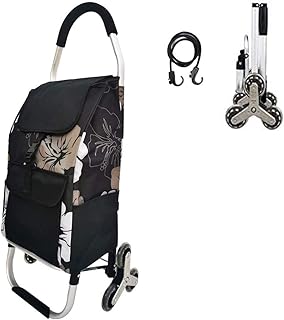 Chariot de magasinage pliant sur 6 roues, Chariot pour escalade d'escalier, Chariot d'épicerie noir avec cadre en aluminium inoxydable et sac en toile imperméable amovible (28 x 33 x 105 cm)