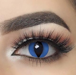 Lentilles De Contact De Couleur Fantaisie Crazy Lens Cosplay 'MYSA LENS®' Yeux De Chat / Oeil De Chat Bleu/ Oeil De Serpent /Blue Cat Eyes + Solution Pour Lentilles 10ML + Etui Offert - 12 Mois sans correction