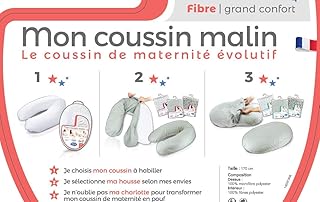 P'tit Lit - Coussin de Maternité et d'Allaitement - Garnissage fibres creuses : Ultra Confort - Oreiller de Grossesse Moelleux et Silencieux - Oeko-Tex® - Fabrication Française