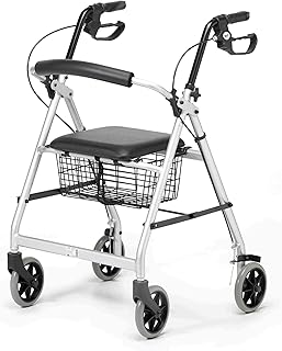 Days Essentials, Lightweight Wheel Rollator, Folding Four Wheel Walker with Padded Seat, Back Support, Ergonomic Handles With Seat Basket, Carry Bag, Silver/Grey