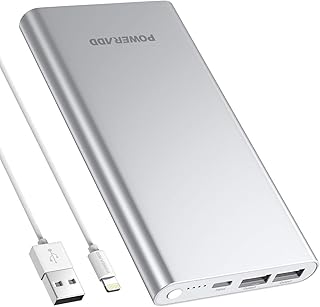 POWERADD Pilot 4GS Batterie Externe Portable 12000mAh avec 2 USB Ports Batterie de Secours Compacte pour iPhone - Argent