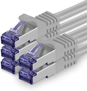 1aTTack.de Cat.7 Câble réseau 7,5m - Gris - 5 pièces Cat7 Câble Ethernet PoE LAN 10 GB s S-FTP PIMF Set Patch Cat 7 Câble Brut avec connecteur Rj 45 Cat.6a