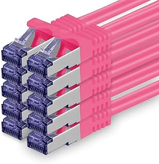 1aTTack.de Cat.7 Câble réseau 5m - Magenta - 10 pièces Cat7 Câble Ethernet PoE LAN 10 GB s S-FTP PIMF Set Patch Cat 7 Câble Brut avec connecteur Rj 45 Cat.6a