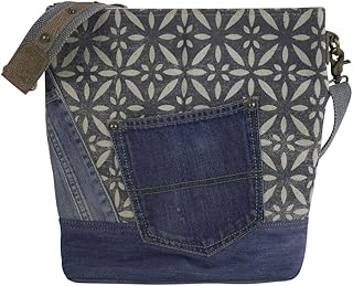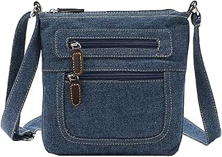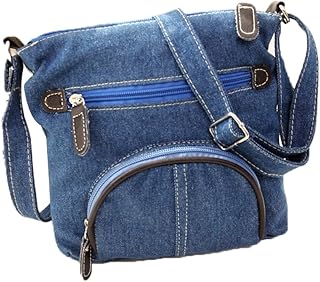 Sac à bandoulière pour femme - Sac à main en toile et cuir - Avec poches en jean - Petit sac à bandoulière bleu - Vintage - Pour adolescents