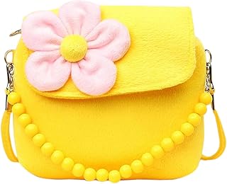 Vi.yo Filles Princesse Sacs à Main Mignonnes Petites Filles à La Mode Fun Florale Fuzzy Sac à Main pour Les Tout-Petits Petites Filles et Les Enfants D'âge Préscolaire(Jaune)