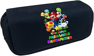 Super Mario Trousse à Crayon Trousse à Crayons imprimée à Double Fermeture à glissière Étuis à Crayons Multifonctions de Grande capacité (Color : Black12, Size : 20 X 10 X 7.5cm)