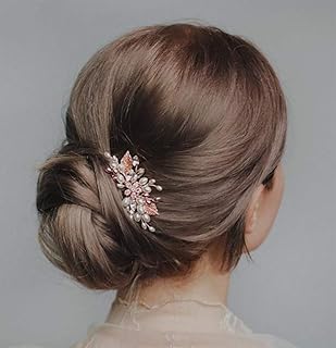 IYOU Peigne à cheveux de mariage mariée argent fleur cristal morceaux de cheveux strass coiffes perle mariée accessoires de cheveux pour femmes et filles (or rose)