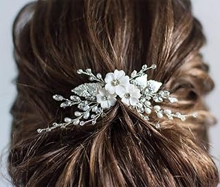 Simsly Mariée Fleur Peigne à cheveux Feuille Argent Tête de Mariée Perle Accessoires Cheveux pour Femmes et Filles