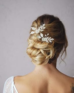 Edary Bride Épingles À Cheveux De Mariage Fleur Argent Pièces De Cheveux De Mariée Feuille De Mariage Accessoires De Cheveux Strass Pinces À Cheveux De Mariée pour Femmes et Filles Lot de 2