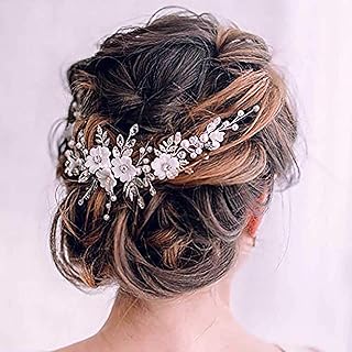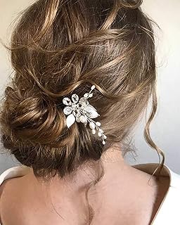 Simsly Épingles à cheveux en forme de fleur de mariée Argenté Feuille de Mariée Coiffure de Mariée Perle Accessoires de Cheveux pour femmes et filles