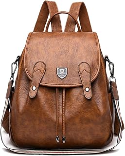Sac a dos avec Bandoulière Rabat pour Femme Sac à main porté dos pour Adolescent Fille Sacs à dos loisir en Cuir PU Marron