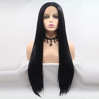 Xiweiya Perruques longues et soyeuses noires avec cheveux de bébé 1B # Couleur synthétique noire avec dentelle frontale pour femme Cheveux résistants à la chaleur Perruques de cheveux longs 61 cm
