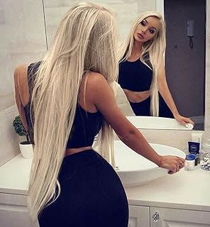 VEBONNY 613 Perruques de dentelle pour femme Blond platine Blonde cheveux raides et soyeuses Argent avec partie centrale 61 cm VEBONNY-061