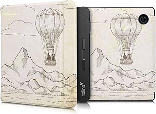 kwmobile Étui liseuse Compatible avec Tolino Vision 5 - Housse avec Rabat magnétique en Simili Cuir - montgolfière Brun foncé-Beige