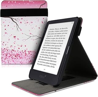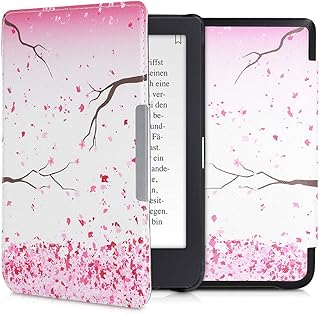 kwmobile Étui liseuse Compatible avec Tolino Shine 3 - Housse avec Rabat magnétique en Simili Cuir - Cerisier en Fleur Rose Clair-Brun foncé-Blanc