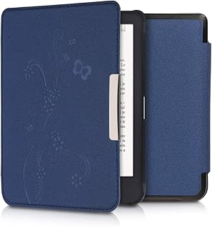 kwmobile Étui liseuse Compatible avec Tolino Shine 3 - Housse avec Rabat magnétique en Simili Cuir - Papillons et Fleurs Bleu foncé