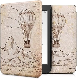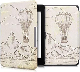 kwmobile Étui liseuse Compatible avec Amazon Kindle Paperwhite (10. Gen - 2018) - Housse avec Rabat magnétique en Simili Cuir - montgolfière Brun foncé-Beige
