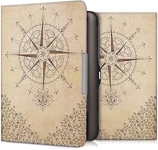 kwmobile Étui liseuse Compatible avec Tolino Shine 3 - Housse avec Rabat magnétique en Simili Cuir - Compas Baroque Brun foncé-Beige